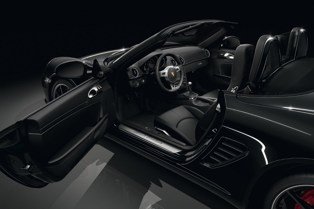 Ma tutto ciò è già abbastanza comune: cosa rende la nuova Porsche Boxster S Black Edition differente dalle altre versioni? L’allestimento speciale di Porsche Boxster S è riconoscibile per i cerchi in lega neri, per la verniciatura nera, per i roll-bar neri, per le prese d’aria nere, per il rivestimento parziale in pellame nero e per l’atmosfera interna nera (spezzata soltanto da alcuni elementi in alluminio). Inoltre, la nuova Boxster S Black Edition viene dotata di impianto audio, climatizzatore automatico, interfaccia universale, volante sportivo, sistema di navigazione satellitare, battitacco, sensore pioggia e gruppi ottici allo xeno.